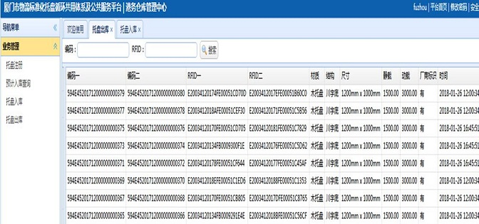 1月26日上午11:50分,第一票通過嵌入RFID芯片的標準化托盤(1.2m*1.0m)帶板運輸業(yè)務,順利抵達港務物流海滄嵩嶼拼箱中心,并成功通過中托互聯(lián)平臺(廈門市物流標準化托盤循環(huán)共用公共服務平臺)實現(xiàn)托盤電子信息化管理,港務物流標準化托盤共用體系初步建立。