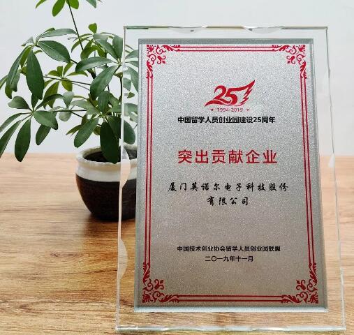 經(jīng)各單位推薦和評審委員會審議,英諾爾等123 家企業(yè)被評為“中國留學人員創(chuàng)業(yè)園建設(shè) 25 周年突出貢獻企業(yè)”